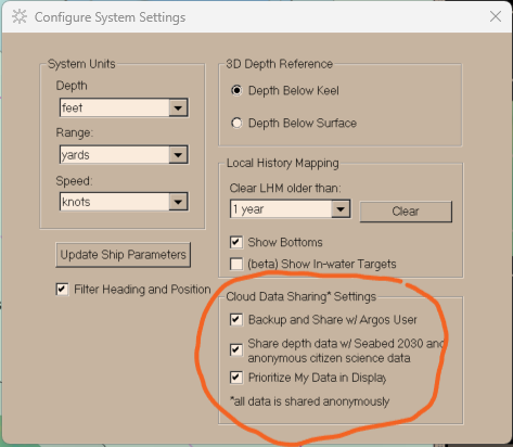 Participating in FarSounder’s data sharing program is easy! Because of FarSounder’s privacy first policy, this functionality is disabled by default. Simply enable the functionality in SonaSoft’s settings: