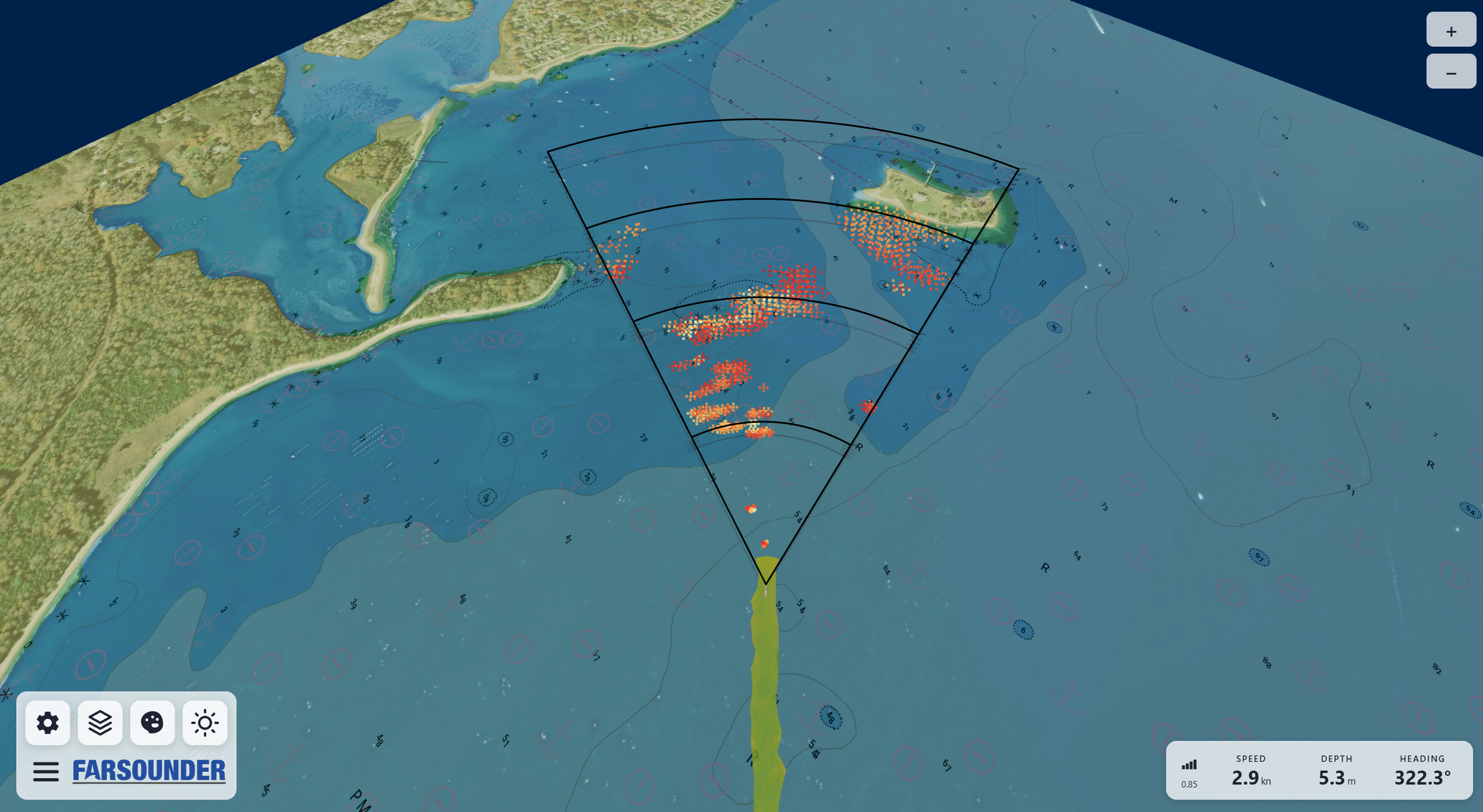 3D FLS Sonar data as overlay on top of chart and aerial imagery data in SonaSoft LT